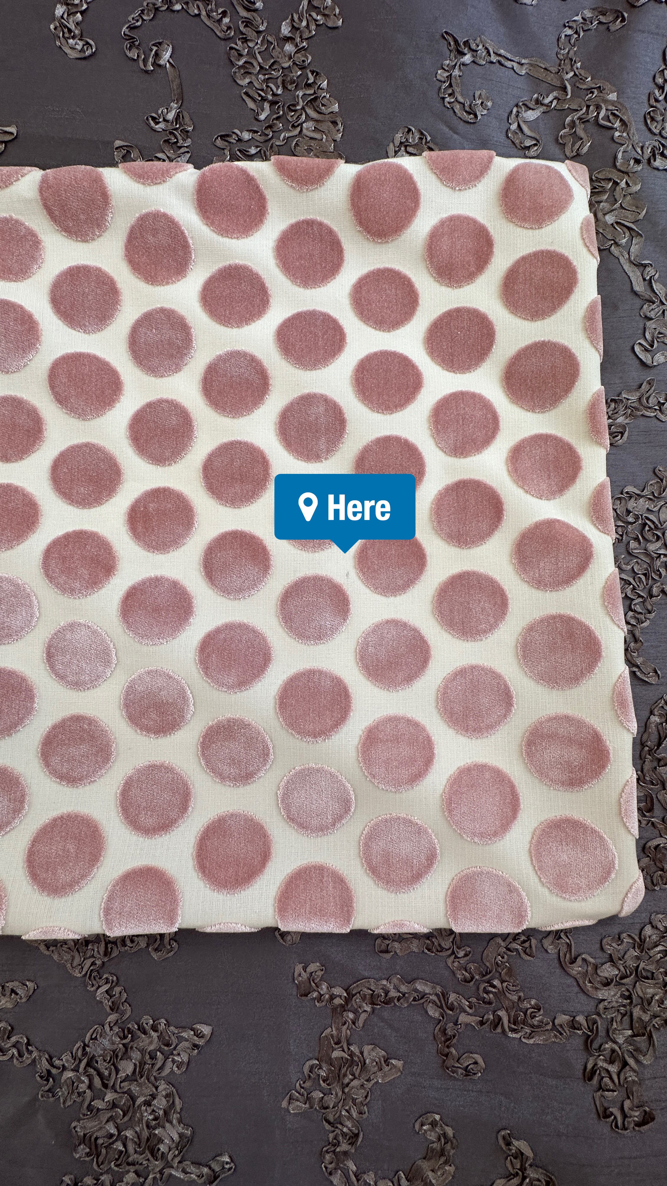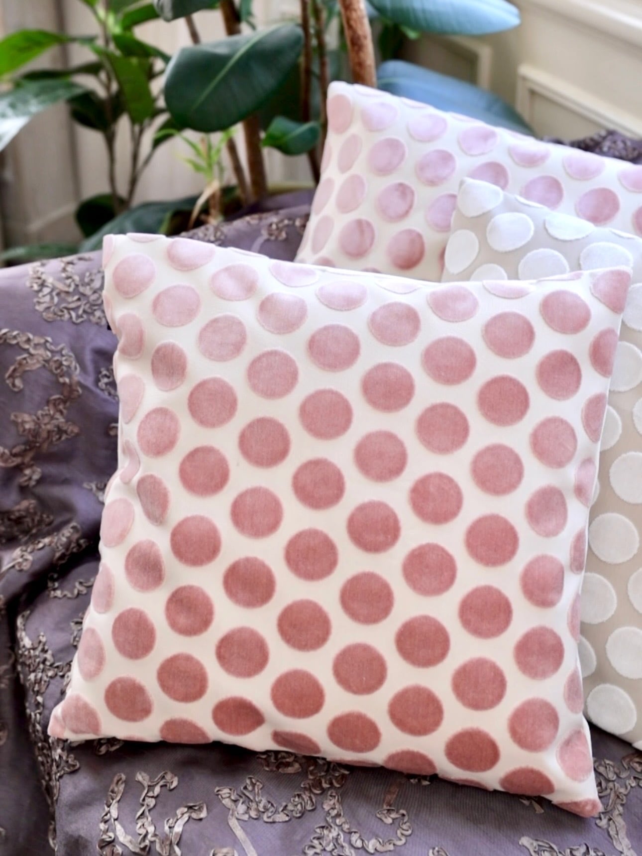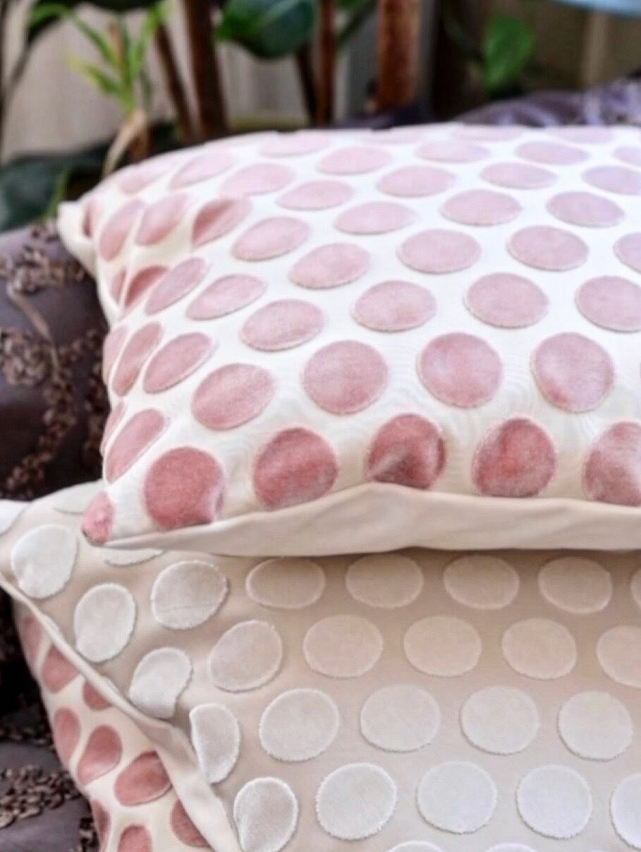 カットベルベット素材の水玉模様が可愛らしく、インテリアに華やかさをプラスします。