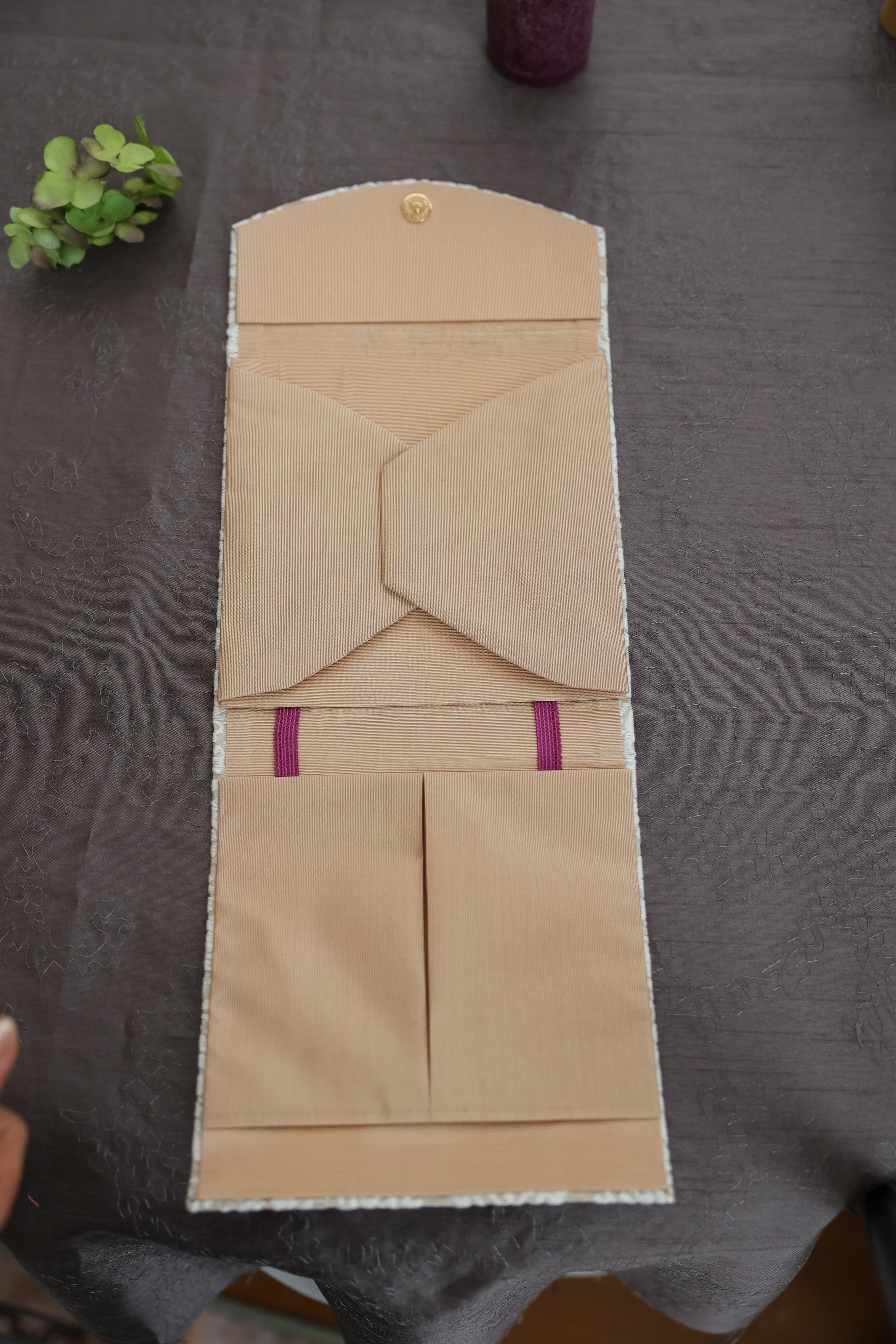 茶道の上級者様や茶道を愛する方々にぴったりの袱紗ばさみです。1/4サイズに畳んだ袱紗がすっぽりと納まる設計で、使いやすさを追求しています。美しいデザインは、日常的な携帯品としてだけでなく、特別なシーンでも華やかさをプラスします。